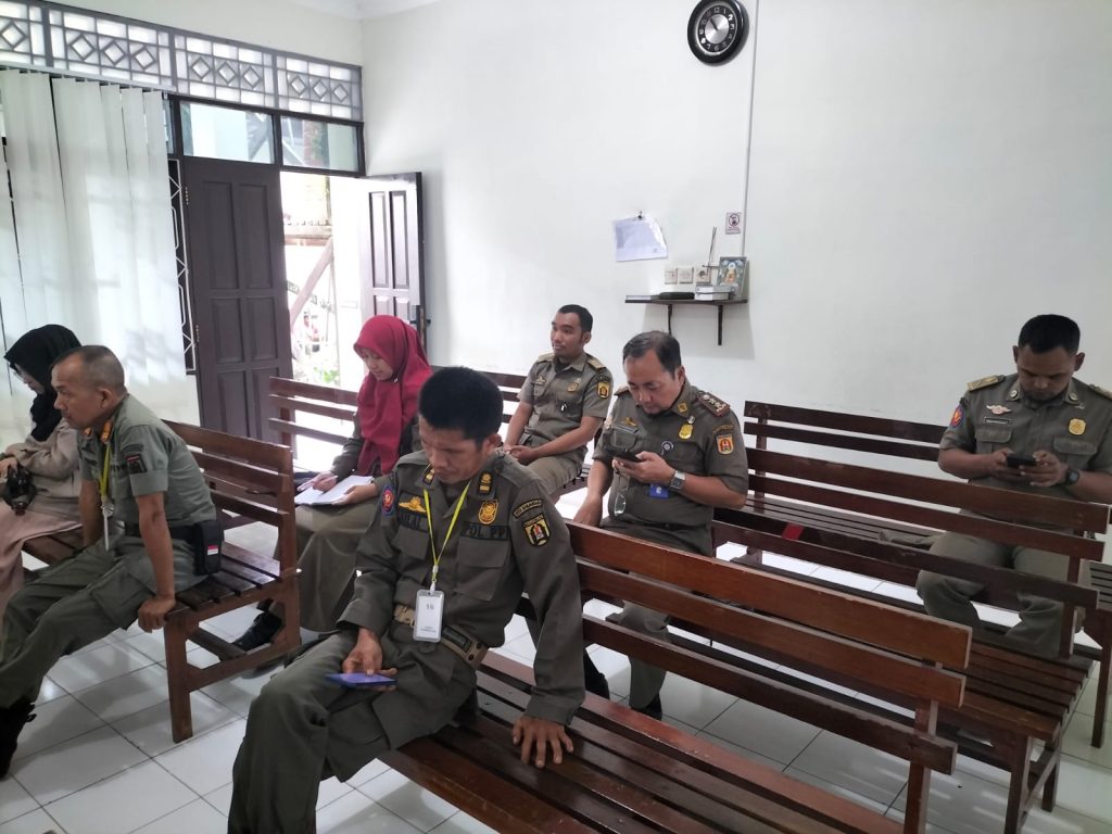 Dipimpin langsung oleh Kepala Bidang PPUD Satpol PP Bapak H. Denny Mahendrata, SH, MH Petugas Melakukan pengamanan Sidang Tindak Pidana Ringan (Tipiringg) atas Pelanggaran Perda No.6 Tahun 2002 Tentang Pemberantasan Pelacuran yang